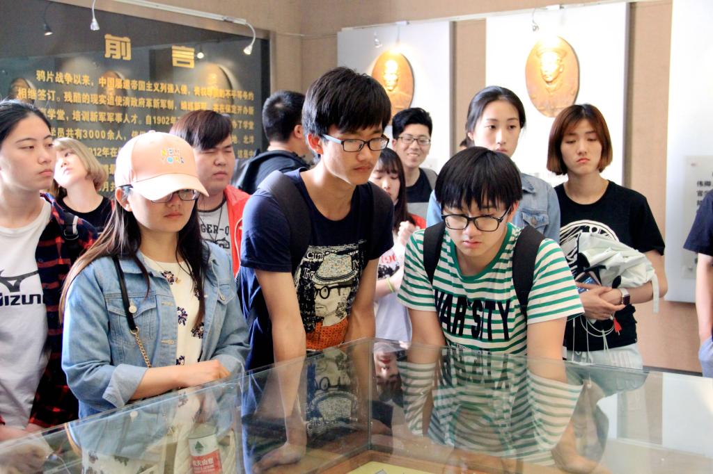 随后实践团队一行人来到保定市区,参观了在中国近代史的舞台上扮演重要作用的保定陆军军官学校,冯国璋、段祺瑞、蒋百里等人先后担任过校长,保定军校培养了诸多军事人才,该校毕业生遍布中华民国军界和政界,对中国近代历史发展产生了重要影响。馆内讲解员向一行人详细介绍了这所中国近代史上第一所正规陆军学校,叶挺、李济深、张治中、傅作义、蒋中正、张群、白崇禧、陈诚等均毕业自这所学校,他们在后来的中国革命历程中扮演着举足轻重的角色。通过参观我们了解了纪念馆中毕业生们的事迹以及中国军民为抵抗日本帝国主义侵略者所做出的巨大牺牲,师生党员们表达了自己对日寇侵略行为的愤慨和谴责,对近现代中国历史中涌现出的一大批仁人志士表达了深深的敬仰之情。
